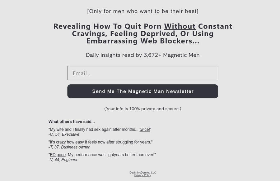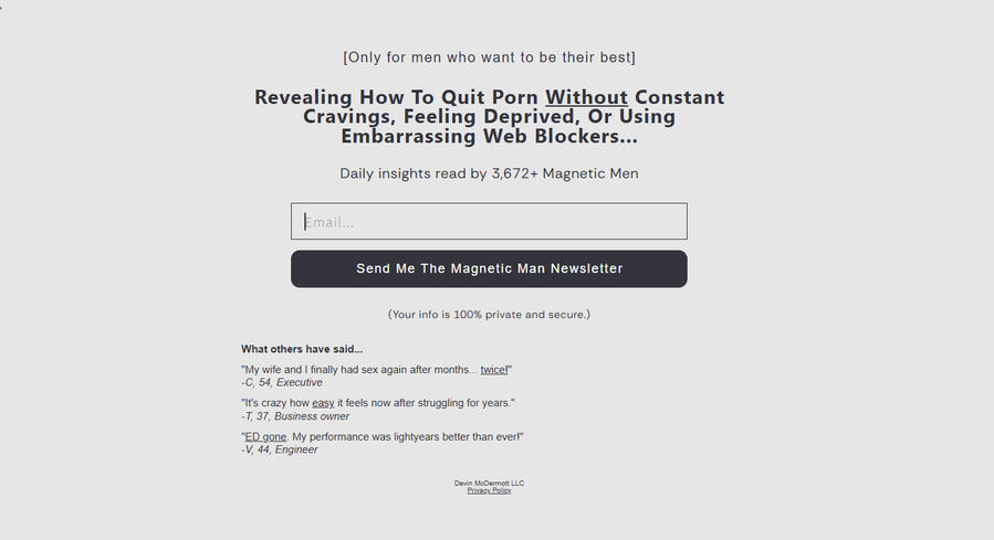 I won't leak your name.No one needs to know you subscribed but you.This is your battle. I'm just here to help by sending discrete daily emails meant for your eyes only.